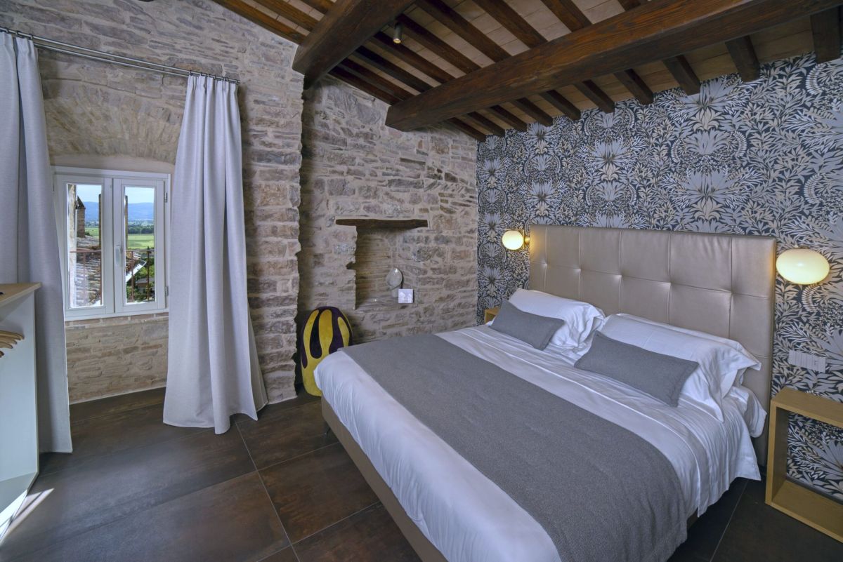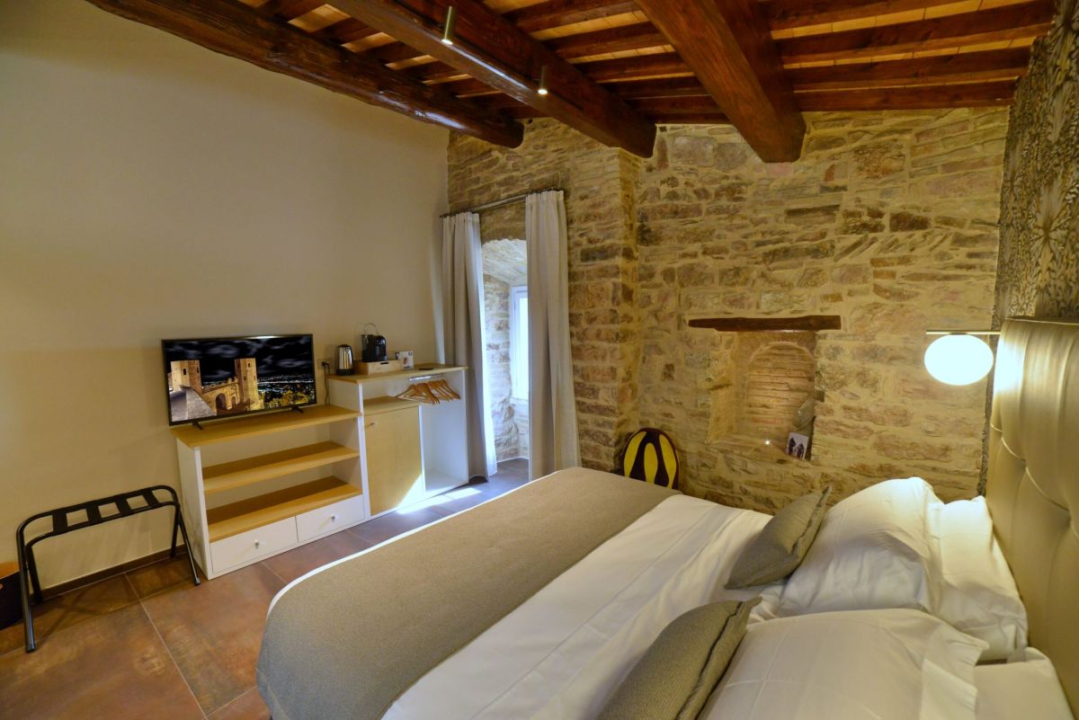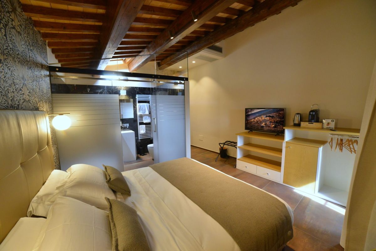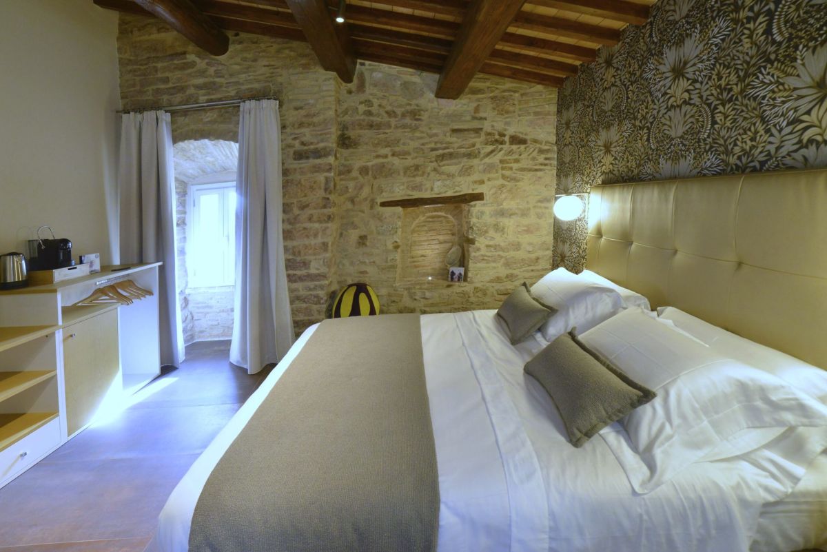 La stanza è completamente indipendente e curata nei minimi dettagli, con arredi di pregio e finiture moderne. Dalla finestra si gode una splendida vista panoramica sulla vallata, perfetta per immergersi nell’atmosfera unica del borgo.